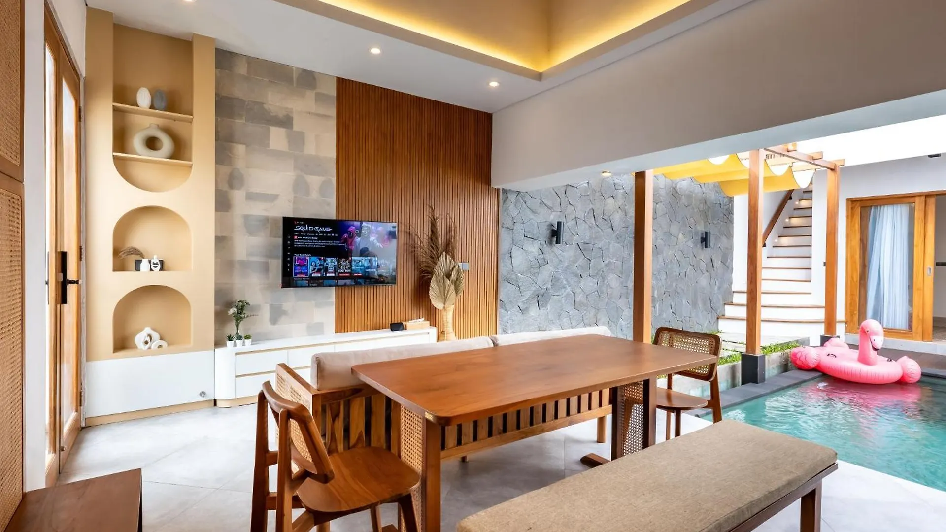 La villa se encuentra a unos 10 minutos en coche del Parque Acuático CitraLand. Esta villa se encuentra a 8 km de atracciones naturales como la Playa de Batu Bolong. Los huéspedes también pueden visitar el Parque Acuático Taman Segara Madu, situado a 15 minutos en coche.